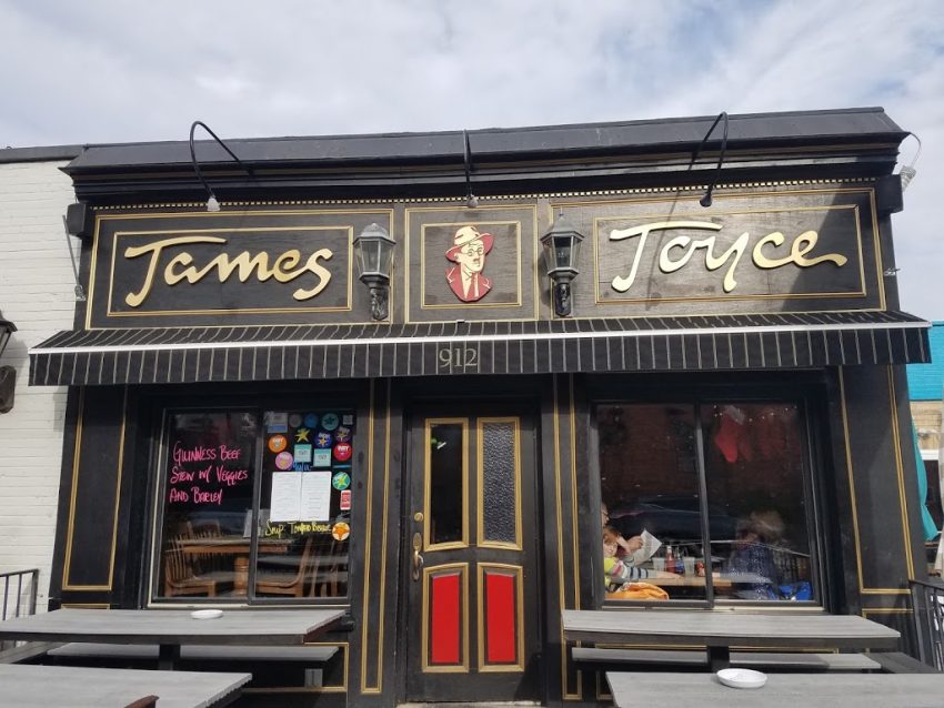 James Joyce Irish Pub and Restaurant Location: 912 W Main St, Durham, NC 27701Email: fergusbrad@yahoo.comPhone Number: (919) 683-3022Facebook: JamesJoyceIrishPubInstagram: jamesjoyceirishpub Intimate haunt featuring Guinness, Celtic pub chow & 2 patios, plus trivia & open-mike nights.